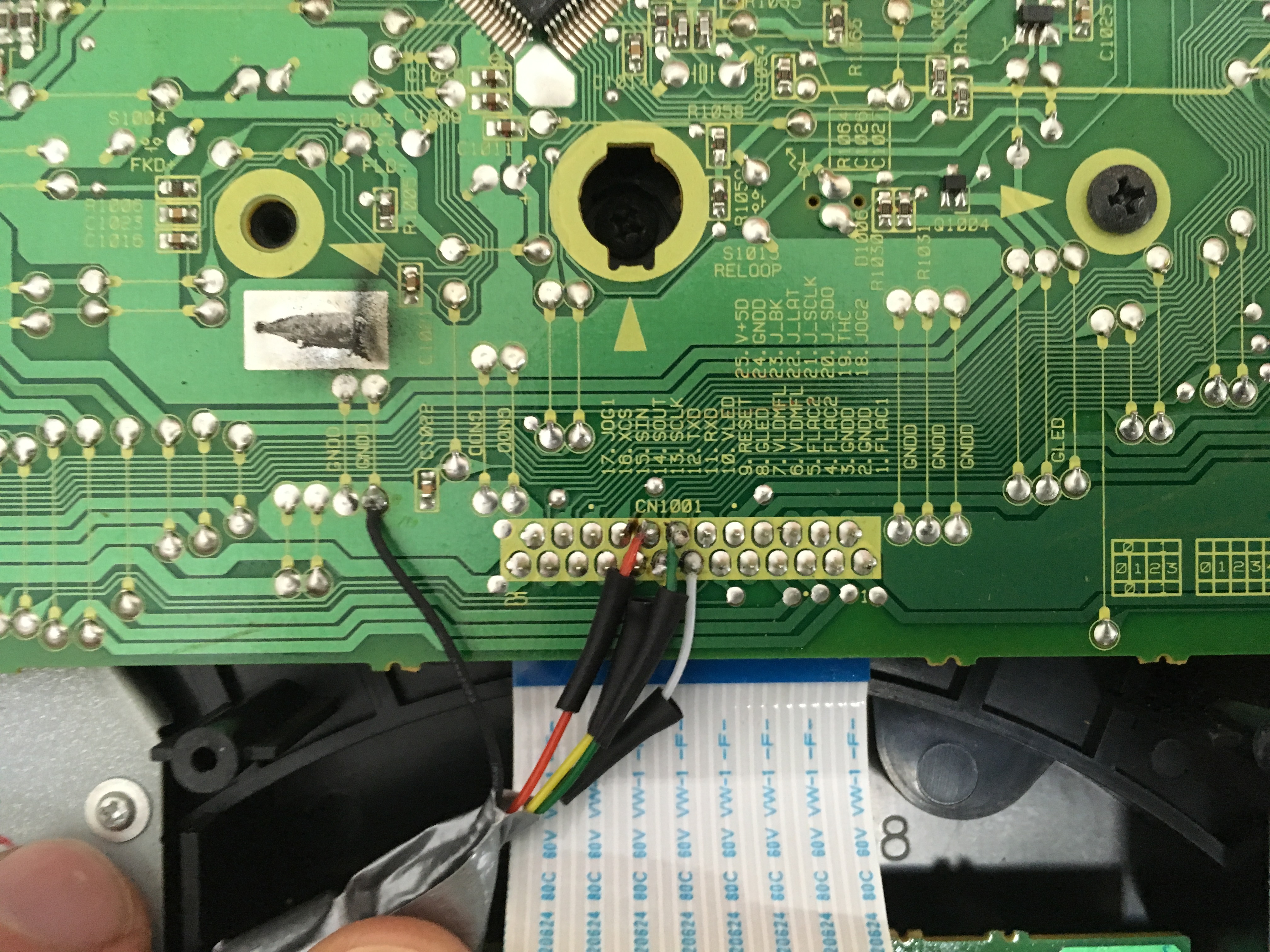 Connections to the top panel of the CDJ as in the photo’s below. 13. SCLK 14. SOUT 15. SIN 16. XCS and GND