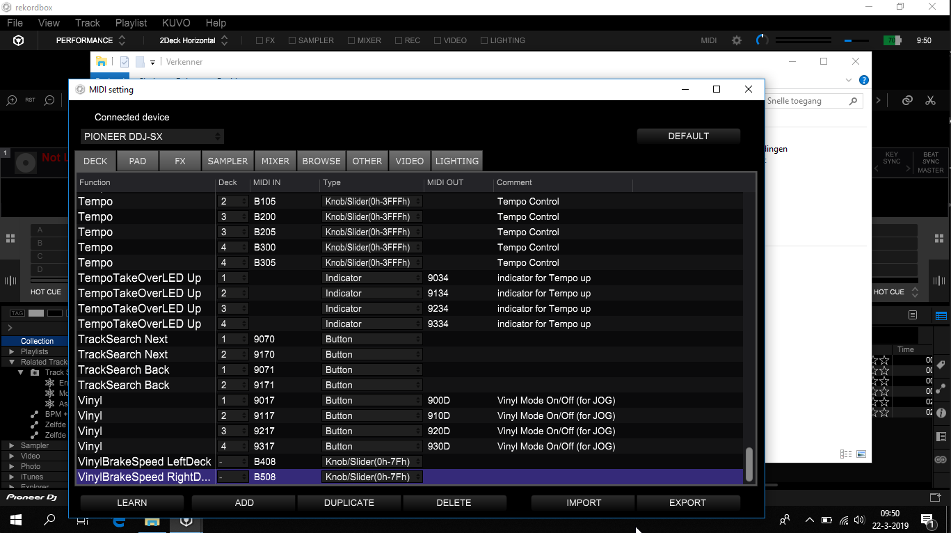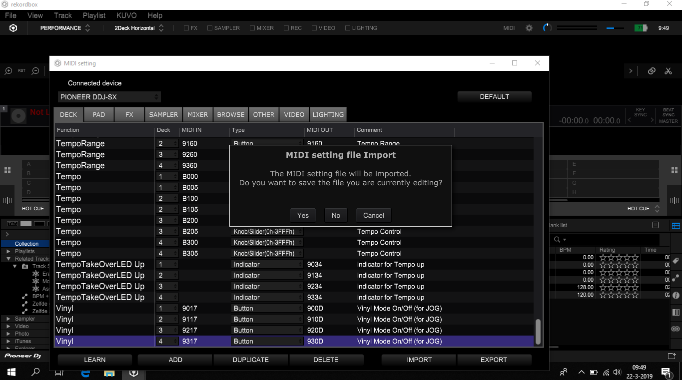 - Import the CDJ2MIDI_V1.CSV file