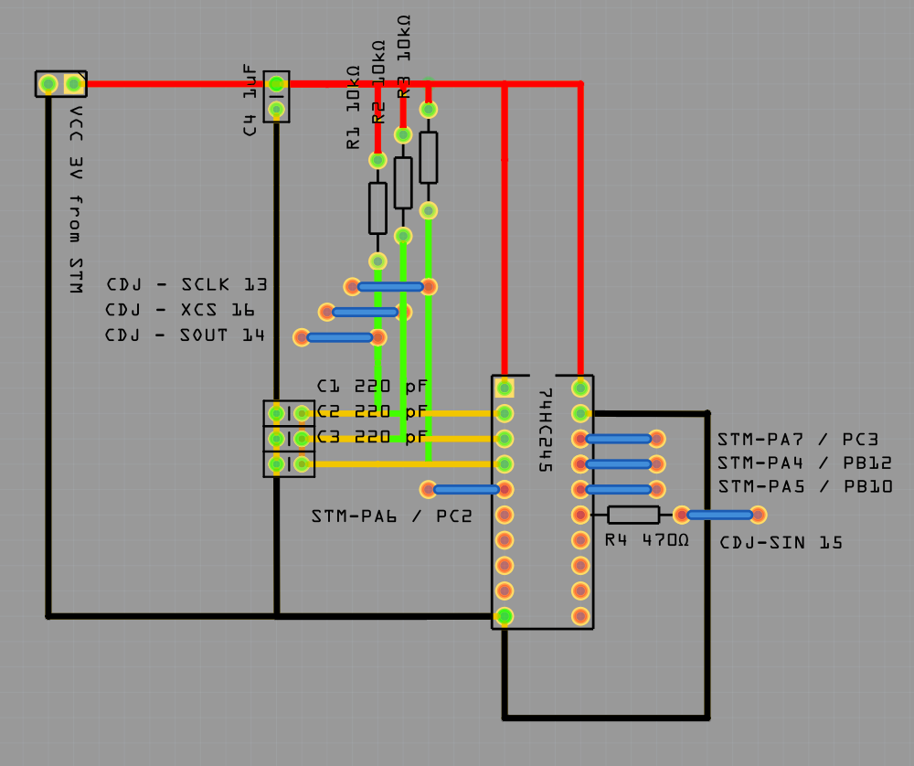 First step is to build yourself 2 logic level shifters. You will need these (one for each CDJ) because the CDJ works at 5 volts and the stm32 at 3.3 volts. I suggest you build 2 small pcb’s, one for each CDJ.