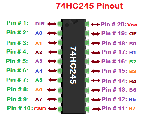 There were some photo’s missing by accident. I’ve added photo’s of the connection to the top panel. And a pin diagram of the 74HC245