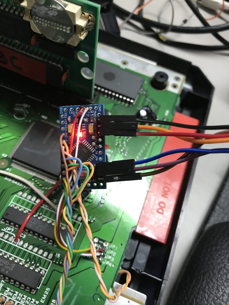 I have done this mod before mostly because people wanted to get rid of the two black bars on the screen and speed up there PAL systems. And it is true, once you are used to play on 60Hz there is no going back 🙂 I still didn’t want to modify the outer shell of my MegaDrive so I decided to use te RESET button. If I press RESET twice it will change region. The power LED will then change from RED -> EUROPE to GREEN -> USA to BLUE -> Japan. If you long press the RESET it will save the current setting to the Arduino Eprom. If you just press RESET once it will act like the usual RESET.