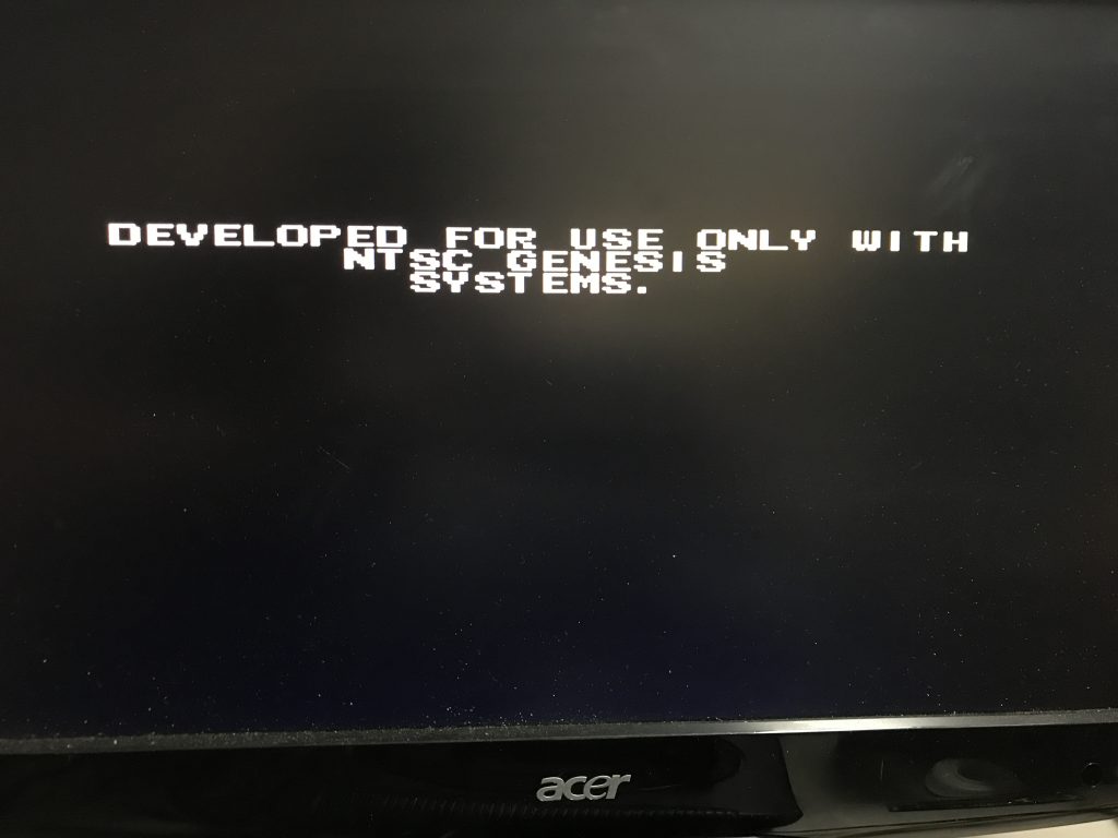 So I came a cross this game PCB without the shell and tried it. I then was greeted with a message I had never seen before; Developed for use only with NTSC Genesis systems. Okay that means that after 27 years it was finally time to mod my own SEGA…